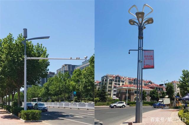 青島市城陽區道路上由青島藍海陽光能源有限公司中標實施的“光輝”造型燈桿與“銀杏”造型燈桿