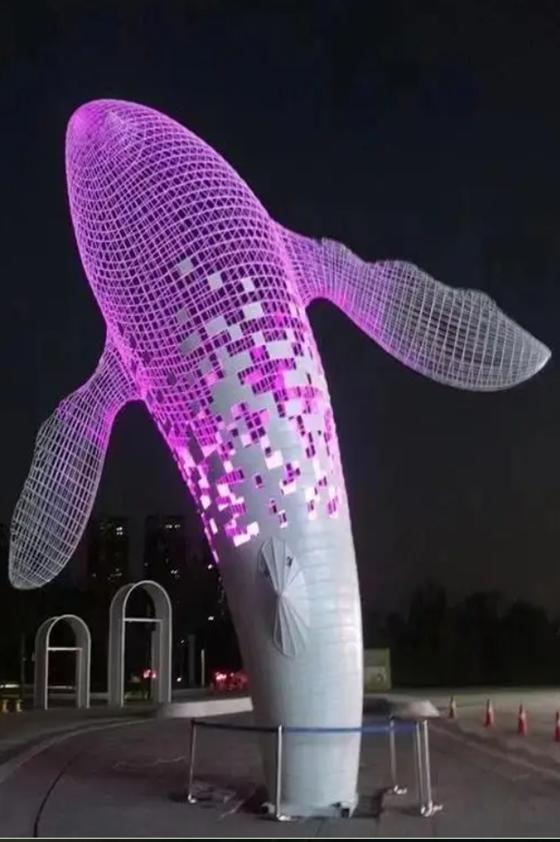 燈光雕塑小品作為藝術品,本身就具有審美價值,由于其造型、色彩、尺度再加上合理布局,本身就是城市公共空間、景區園林一景。運用雕塑小品的裝飾性能夠提高所在地點觀賞價值,滿足人們的審美要求,給人以藝術的享受和美感。